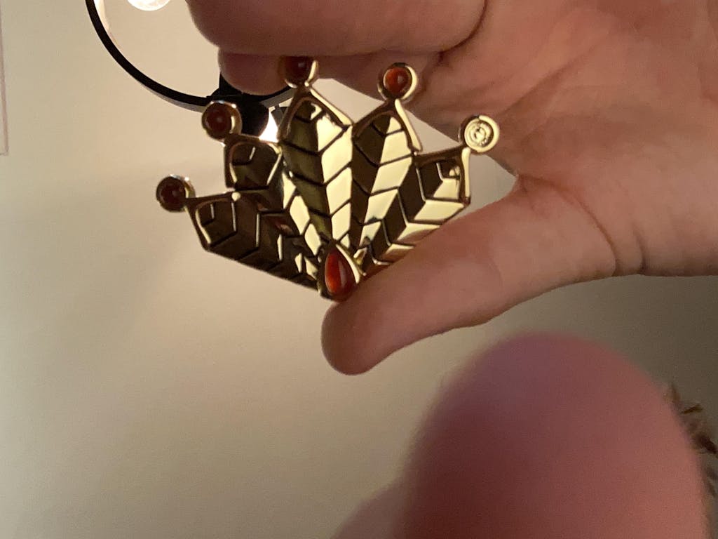 This Camouflage Peacock Miraculous brooch is the perfect gift for every Miraculous Fan. Gold plated with orange stones, this Miraculous brooch is perfect for your collection. Locked by a safety pin, this jewelry will suit your bags, shirts, skirts, or every clothes for your everyday outfits. You can even complete your Felix's cosplay.